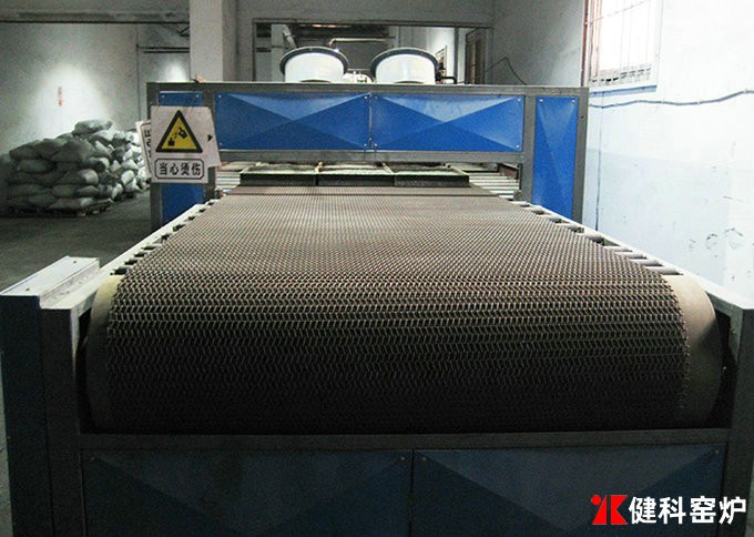 網帶窯屬于連續性窯爐,傳動方式為金屬網帶,金屬網帶由托輥或托板承載,主要用于陶瓷玻璃烤花、玻璃熱彎成型、玻璃退火、催化劑再生、粉體材料的干燥、焙燒。按加熱方式可分為燃氣窯和電熱窯兩類。網帶根據溫度選用不同材質的不銹鋼材料,受金屬材質所限,一般網帶窯使用溫度<900℃。